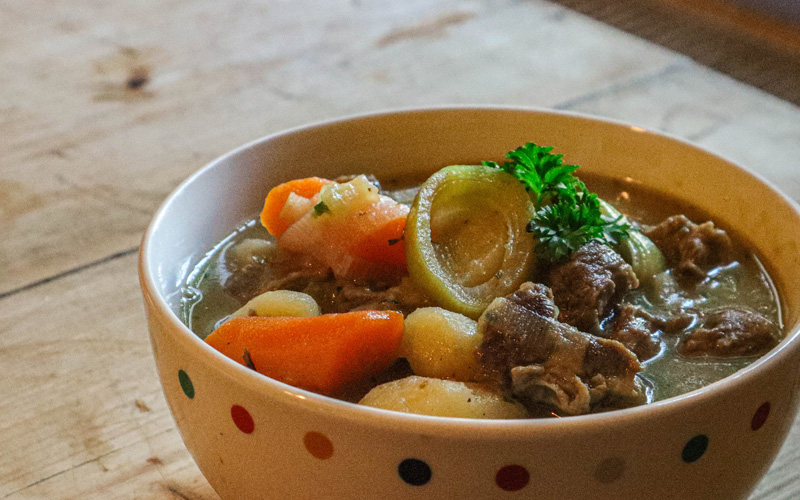 2. The Build: Remove the meat from the bone, chop into bite-sized pieces, and return to the stock. Add potatoes, carrots, and swede/parsnips. Simmer until tender. Add more stock if needed and season to taste.